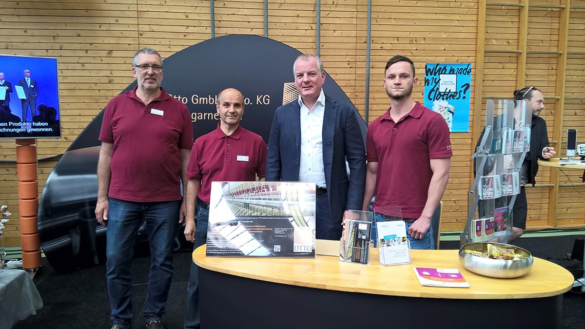 Die Go Textile!-Posterin Rebekka Rüth im Gespräch mit Gebrüder Otto-Geschäftsführer Andreas Merkel am 21. Mai 2017.