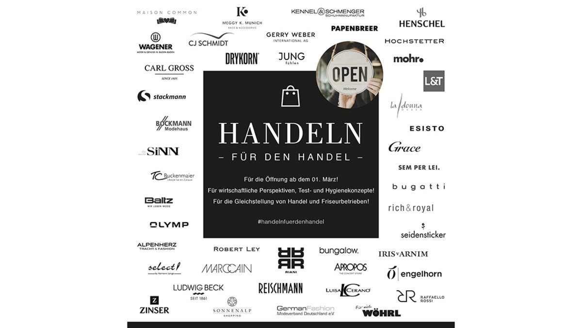 Bereits mehr als 100 Händler und Unternehmen aus der Mode-Industrie haben sich der Initiative ‚Handeln für den Handel‘ angeschlossen und gehen nun den Schritt und kämpfen für die Öffnung und Gleichstellung des Einzelhandels.