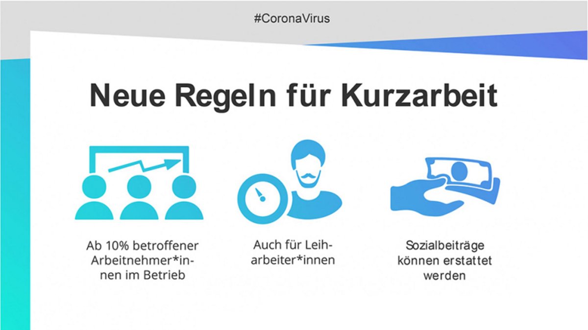 Die Ausweitung des Kurzarbeitergeldes soll schnell und gezielt helfen, wenn Unternehmen mit ihren Beschäftigten durch das Corona-Virus COVID-19 Arbeitsausfälle haben.