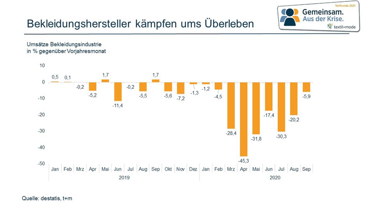 Angesichts der dramatischen Umsatzeinbrüche in der deutschen Textil- und Modeindustrie gibt es in der kommenden Tarifrunde keinerlei Verteilungsspielräume.