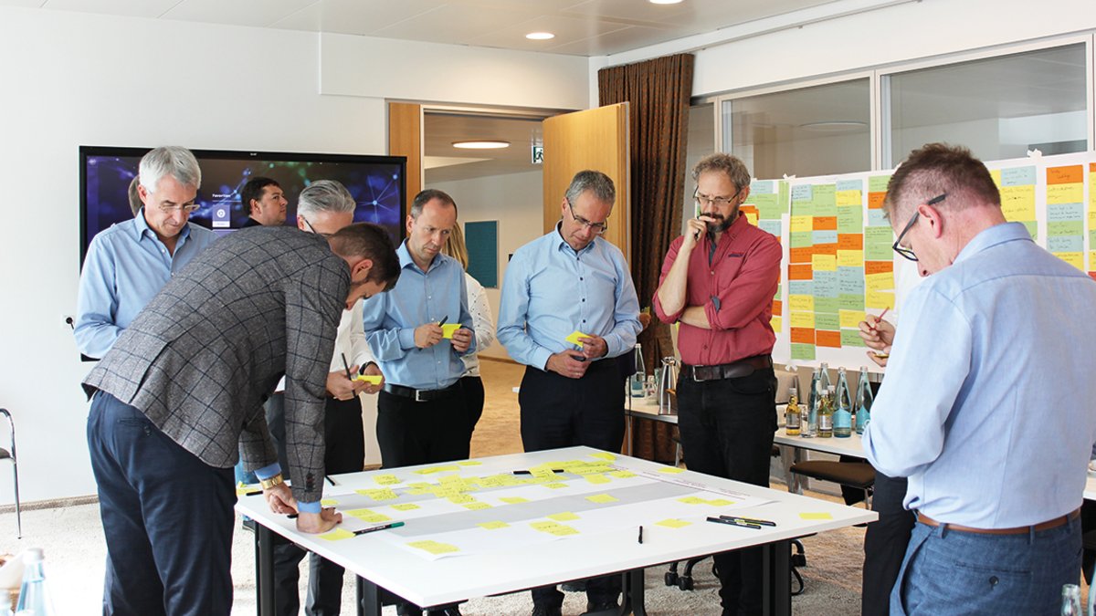 Moderiert wurden die Workshops, jeder hatte ein anderes Leitthema, von Robert Peters (Institut für Innovation und Technik – iit – Berlin). Jeder Workshop begann mit einer ca. 40-minütigen Panel- Diskussion, in der die Teilnehmer miteinander ins Gespräch kamen und aktuelle Herausforderungen und Perspektiven für Textilindustrie und Textilforschung in Deutschland diskutierten. Gestellt wurden Fragen wie z. B.: Was braucht Ihr Unternehmen, um in Zukunft im Textilbereich zu bestehen? Welche textilen Anwendungen wünschen Sie sich? Was motiviert Sie dazu, an textilen Themen zu arbeiten? Ist die Textilbranche gut aufgestellt für aktuelle und künftige Herausforderungen? Wo können Unternehmen, Bildungs- und Forschungseinrichtungen noch besser werden? Unter der Anleitung des Moderators wurden von den Teilnehmern in der ersten Arbeitsphase auf Basis einer „Visual Roadmap“ mögliche Zukunftspfade ermittelt und darauf aufbauend kritische Einflussfaktoren sowie potenzielle Schlüsseltechnologien identifiziert. Die in dieser Phase ebenso identifizierten Schwerpunktthemen wurden in einer abschließenden Arbeitsphase vertieft diskutiert.